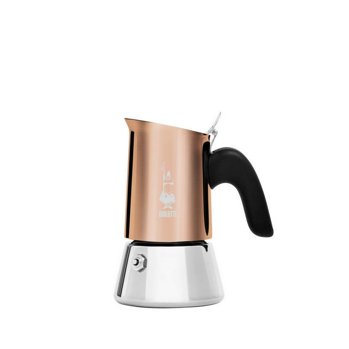 The most popular of our stainless steel stovetops, the Bialetti Venus now available in the elegant copper colour way. The stunning copper is achieved through Physical Vapour Disposition (PVD) treatment. This process produces a surface that is attractive, hard wearing and long lasting.