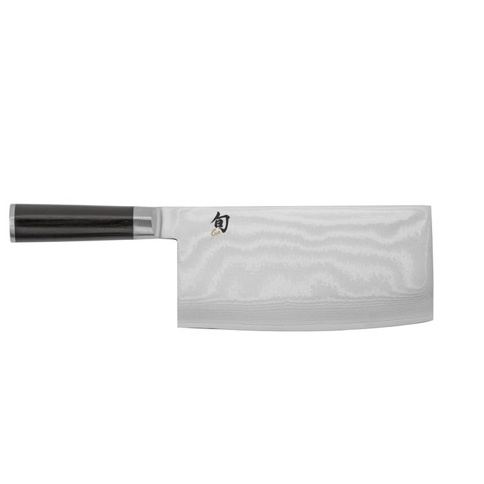 The Shun Classic Vegetable Cleaver, sometimes known as a Chinese cleaver, is a large, squared knife with a very wide blade. It is a multi-purpose knifeāthe Chinese answer to a chef's knife. It's especially useful for processing vegetables, especially larger ones such as cabbage. Yet this cleaver is nimble enough for almost every kind of cutting and slicing, from fruits and vegetables to a full array of proteins. The Shun Classic Vegetable Cleaver feels solid, yet Shun's thinner blade makes it easy to handle so food preparation is a pleasure. The Shun Classic Vegetable Cleaver is not for use on joints or bones. A Meat Cleaver is used for this.