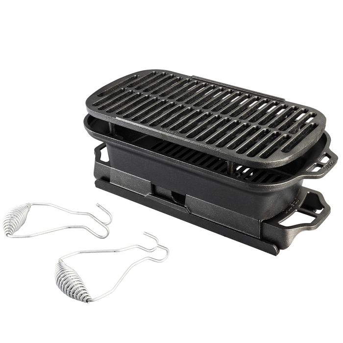 Crafted in America with iron and oil, Lodge's naturally seasoned cooking surface is ready to help you make memorable moments. Comes with a set of steel Hook & Carry Handles for a secure, safe grip when lifting or manoeuvring the grill.