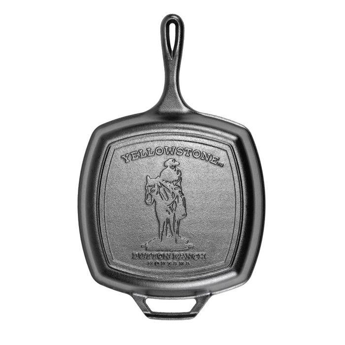 This special edition Yellowstone grill pan represents the best of American grit, told through stories and around the table. The collectible yet functional piece features a cowboy on horseback design, making it the perfect gift for Yellowstone fans. The square grill pan makes it easy to bring grilled flavor to any meal, with seasoned grill ribs that deliver the perfect sear. Put American cast iron to work in your home and keep authentically good food in the family.
