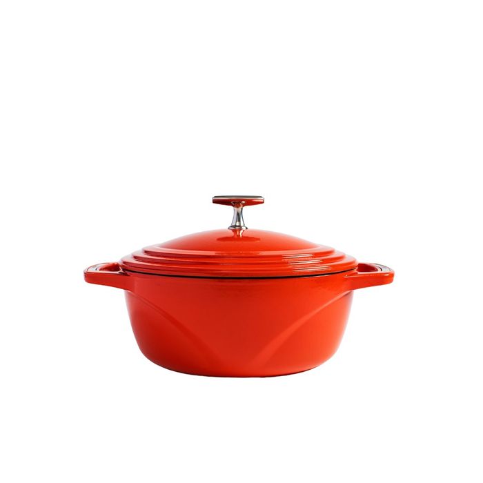 Lodge is proud to offer a new collection of enamelled cast iron cookware . Inspired by the very best in American design, this 4.25L USA Enamel Dutch Oven is the perfect size for creating original recipes, from a weeknight roast to a sourdough loaf. Featuring S/S inlaid handles and hardware on an American-made, enamelled cast iron vessel, this Dutch Oven is made to last for generations of original cooking. Use it to braise, boil, roast, simmer, deep-fry and so much more; plus, move from stovetop to oven to tabletop easily—you can even use it to store or marinate foods in the fridge.