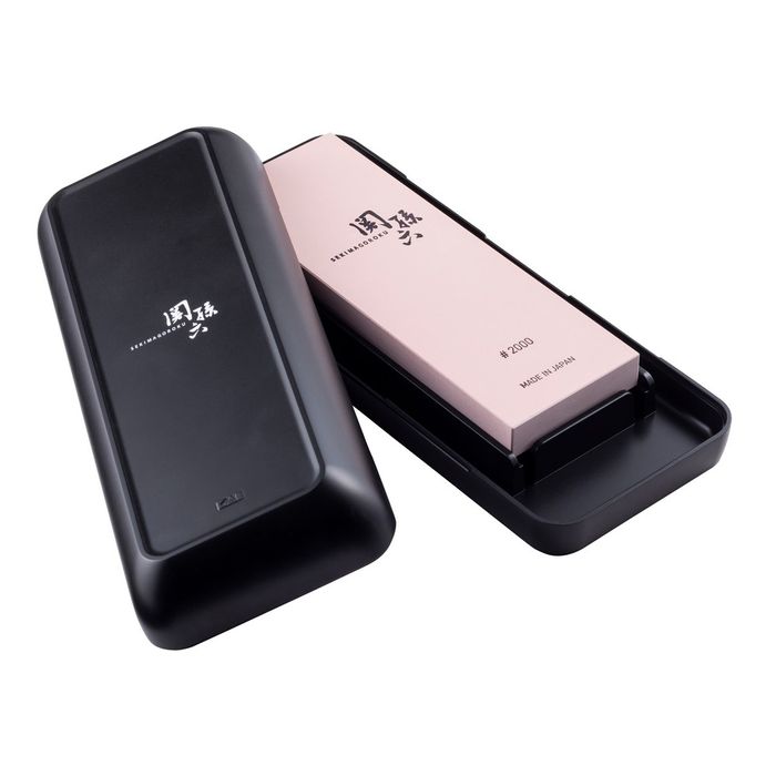 Includes a multifunctional storage case. The lid is designed to hold water for soaking the whetstone prior to use, and the base has non-slip feet to provide a steady platform for sharpening. Suitable for sharpening and maintaining all knives, including high spec blades.