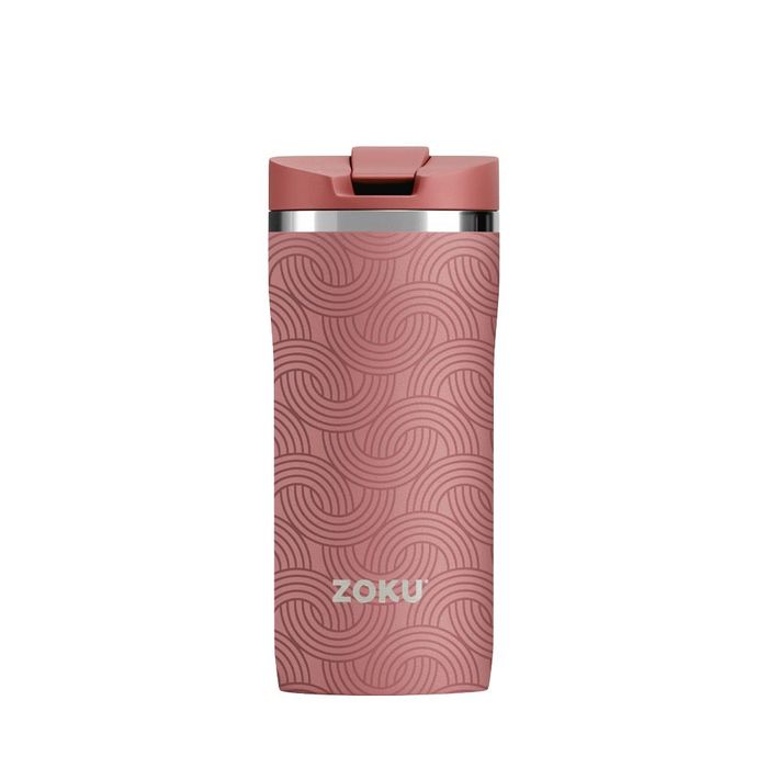Zoku Stainless Travel Mug 355ml Pink Geometric