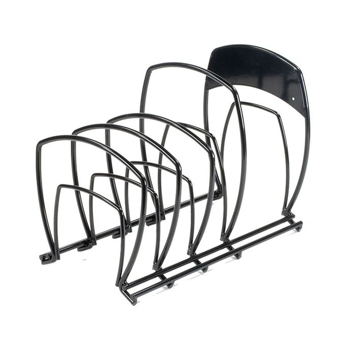 This versatile cookware organizer is designed to hold Lodge Cast Iron’s most popular pieces. It is designed to be placed on a counter or in a cabinet, and can be used for vertical or horizontal storage so you can make the most of whatever space you have to use.