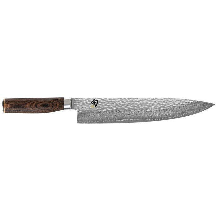 The Shun Premier Chefs Knife is shaped in the traditional European style and is an all purpose knife suitable for shredding, cutting, slicing and cubing all meat, fish and vegetables.