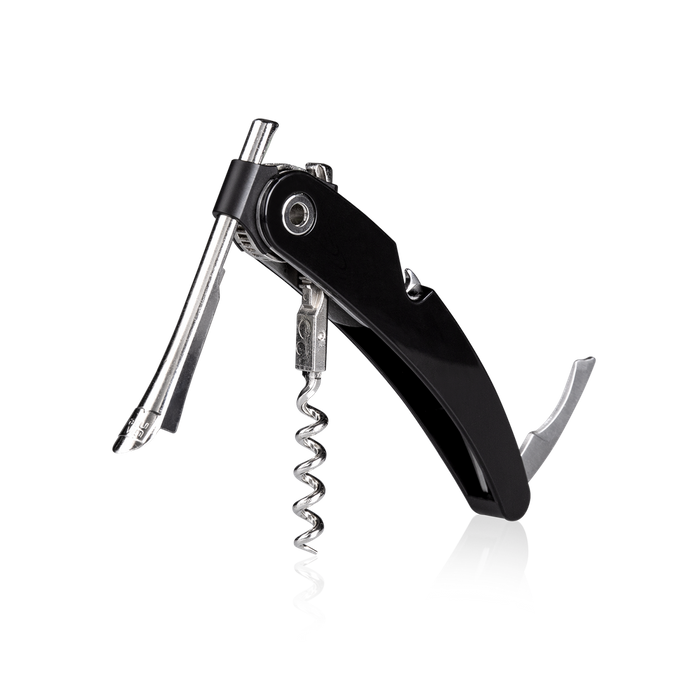 Next to the foil cutter, the grip also contains a “one motion” crown cap opener. The unique lever mechanism makes the Single Pull Corkscrew the ultimate corkscrew for wine enthusiasts as well as professionals.