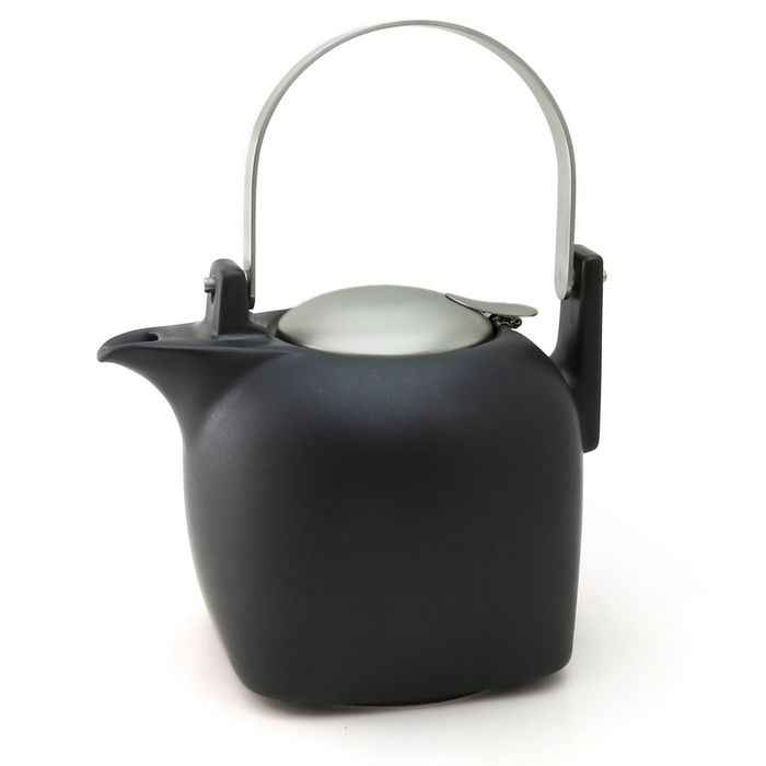 Handcrafted, matt teapot featuring Zero Japan's signature stainless steel lid in a matt finish and easy to clean stainless steel mesh filter. This unique teapot has a traditional Japanese style handle.