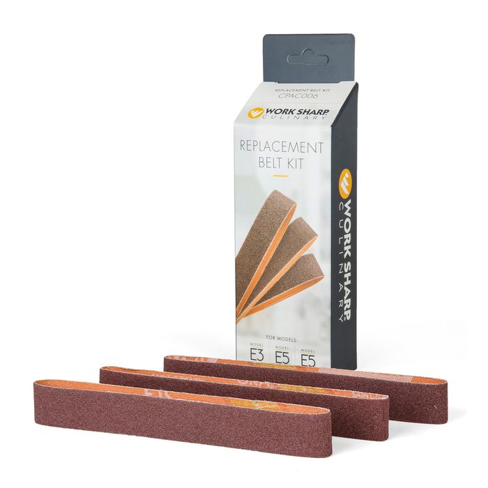 The Replacement Belt Kit was designed for the E4 and E5 kitchen knife sharpener's. This kit includes 3 x standard medium (P120) sharpening belts.