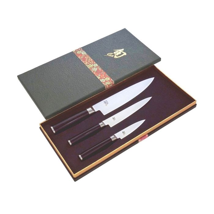 The Shun Classic 3 Piece Knife set is beautifully presented in a special Kai Shun gift box. Each set contains; Shun Classic Paring Knife 9cm (DM0700), Shun Classic Utility Knife 15cm (DM0701), Shun Classic Chefs Knife 20cm (DM0706).